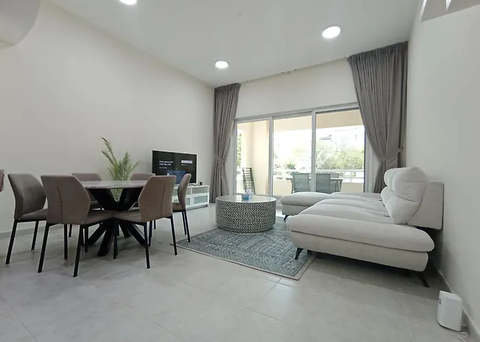 La estación de tren más cercana es Business Bay y se encuentra a una distancia de 25 km del apartamento Cozy Bedroom Retreat In Green Community Pool View.